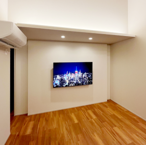 85型のテレビを壁掛け・リブパネルとエコカラット施工