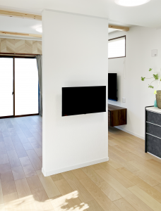 65型のテレビをスイング金具で壁掛け