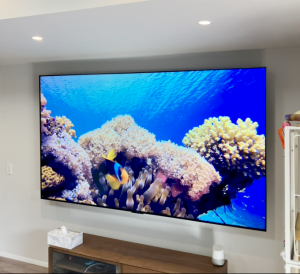 98型のテレビをフラット金具で壁掛け