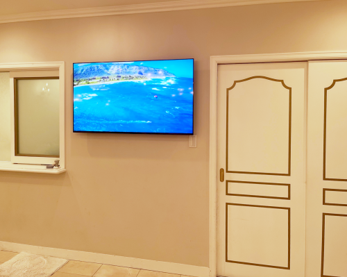 高所へのお取り付けでしたが、壁掛けにするとテレビの転倒の心配もなくなり安心です。