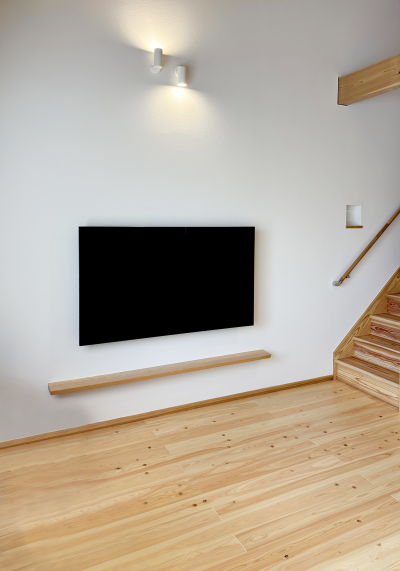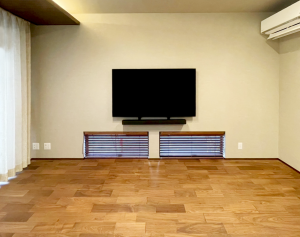 テレビ裏にコンセント類が設置済みだった為、配線は表に一切出ず綺麗に収まりました。