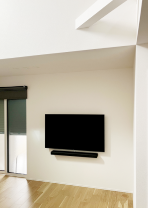 テレビ裏にコンセント口とアンテナ口が設置済みでしたので、テレビの電源はそちらに繋げ、サウンドバーからの配線はモール処理を施す事で、目立たず綺麗に収めました。