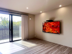 テレビ裏に電源類が設置済みだった為、配線は表に一切出ずスッキリと収まりました。
