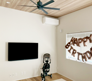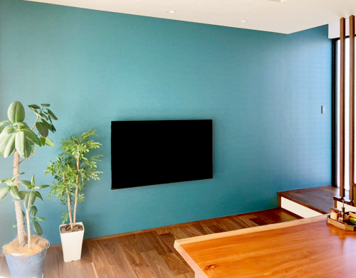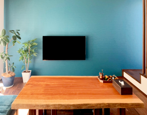 テレビ裏の隠れる位置にコンセント類が設置済みだった為、配線はスッキリと収まりました。