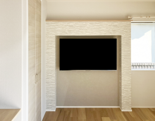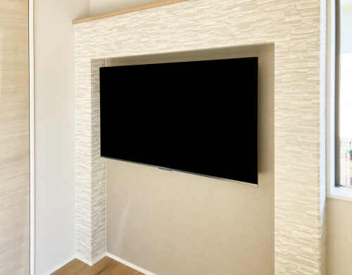 テレビ裏にコンセント類が設置済みだった為、配線はスッキリと収まりました。