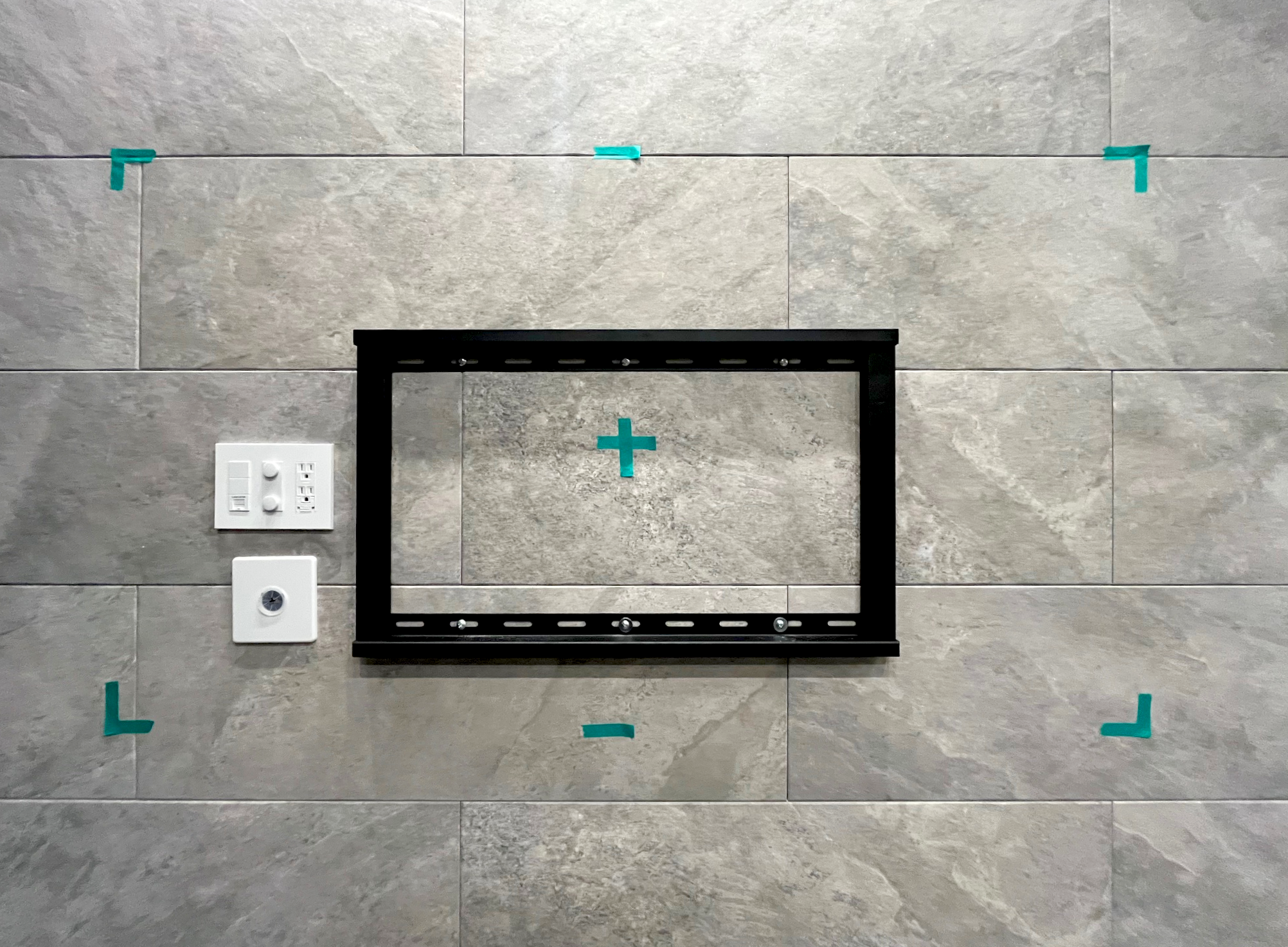 補強済みのエコカラット壁にフラット金具を使用し、65型のテレビを設置しました。