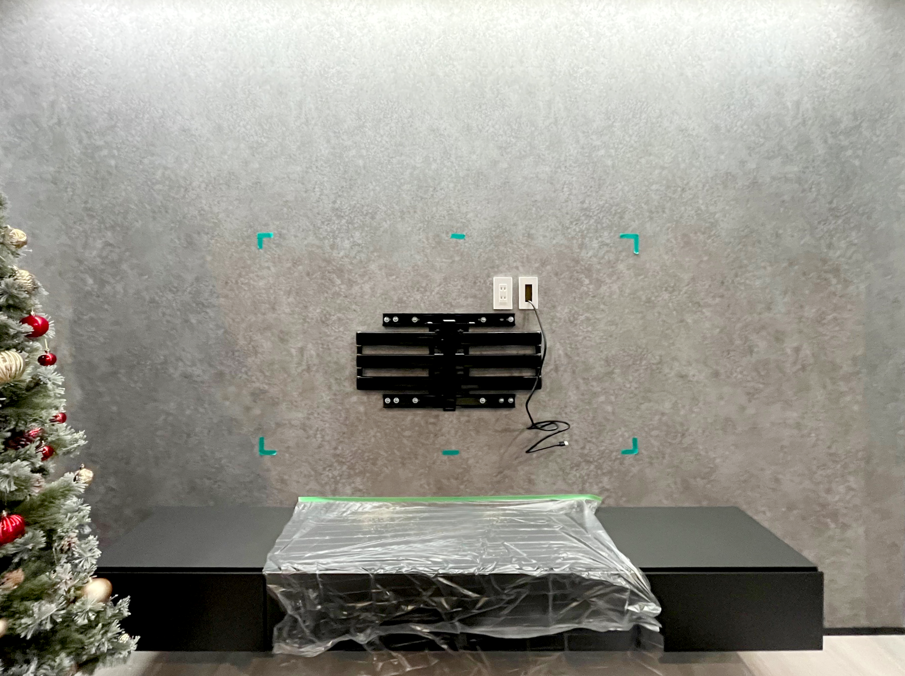 補強済みの壁にお客様保有のスイング金具で取付けいたしました。