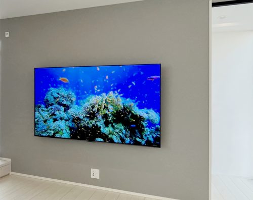 大型のテレビも壁掛けにする事で転倒の心配もなくなり安心です。