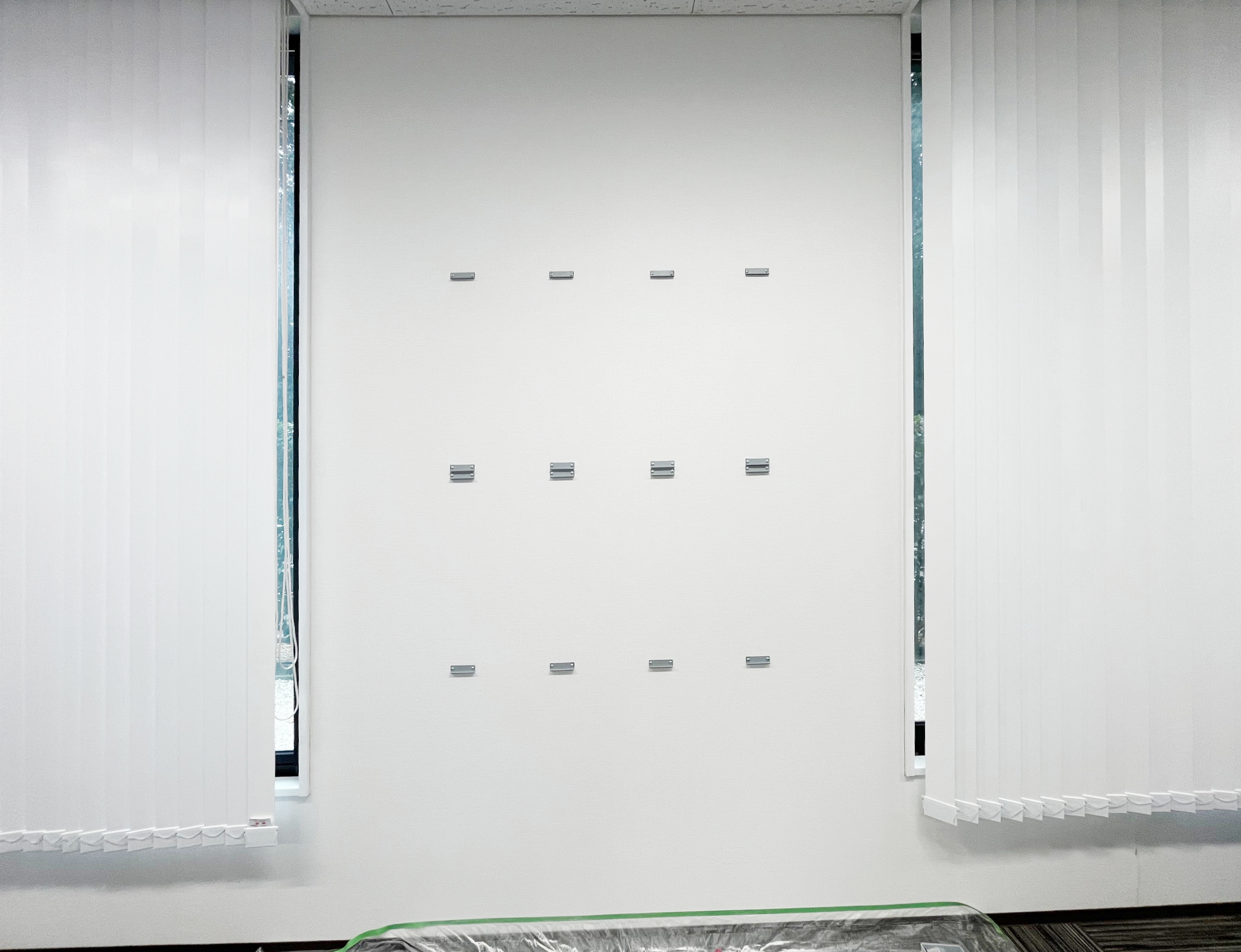 オフィスにお客様保有のフラット金具で75型のモニターと、サイレントパネル(吸音材)の壁掛け工事のご依頼をいただきました。