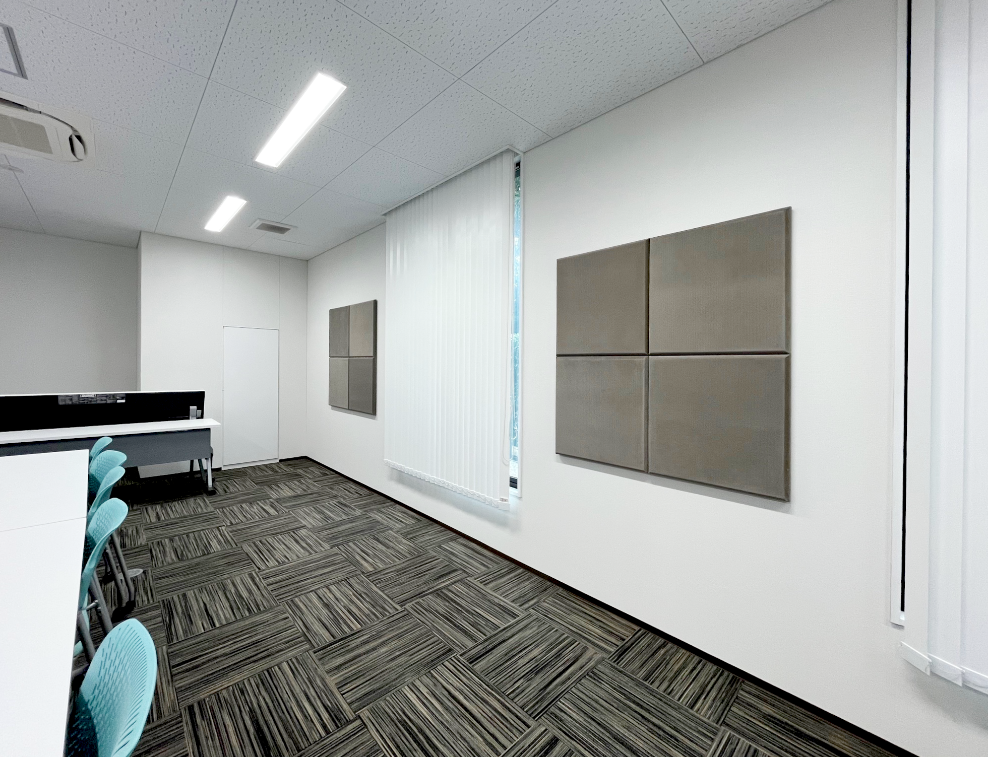 同時に会議室を快適な音響で使用できる様、音の反響を抑えるサイレントパネルのお取付けも実施しました。