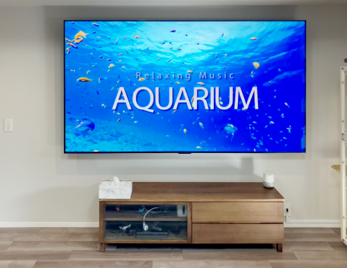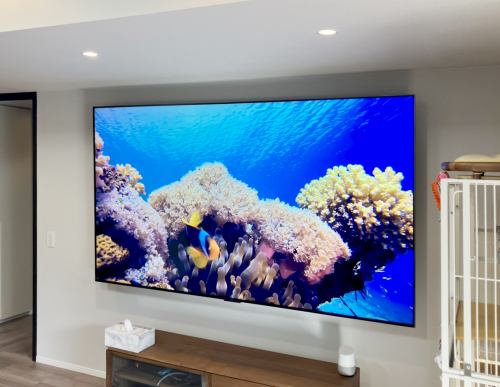 98型のテレビをフラット金具で壁掛け