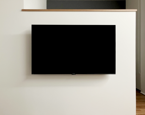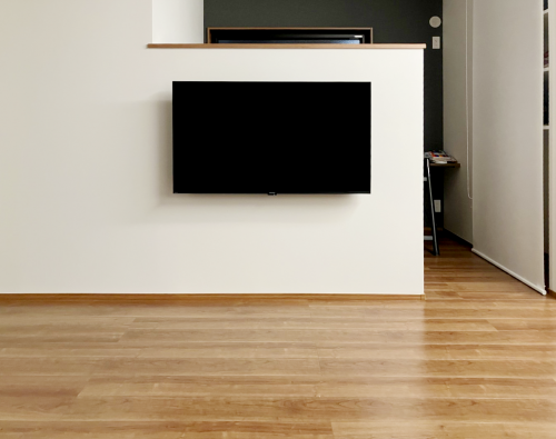 補強済みの壁に50型のテレビをフラット金具で取付けいたしました。