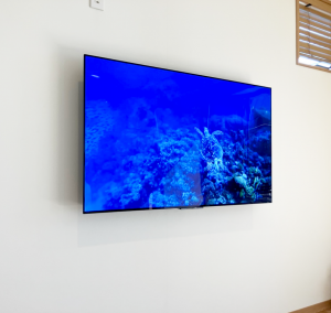 補強済みの壁に65型のテレビをフラット金具で取付けいたしました。