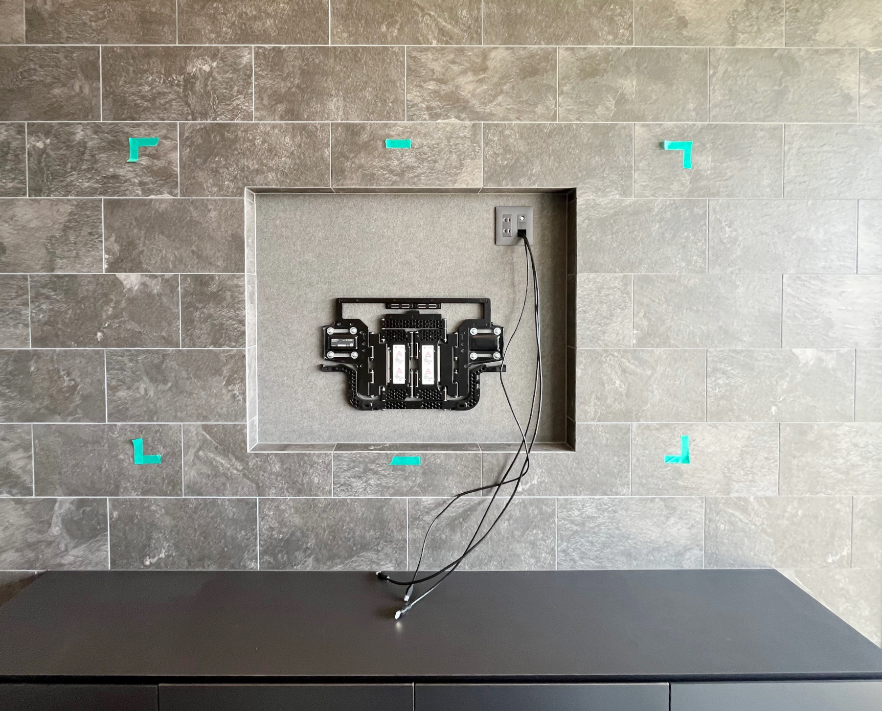 テレビ裏のニッチに金具を設置