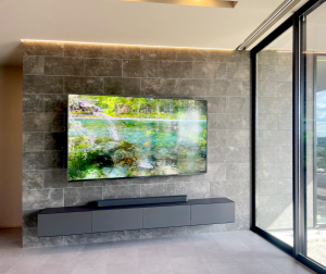 補強済みの壁に65型のテレビをフラット金具で取付けいたしました。