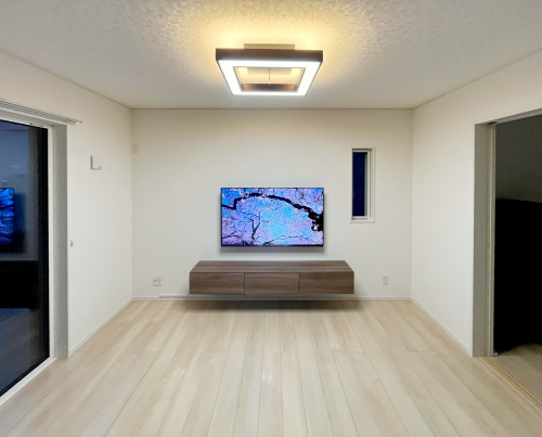 テレビと家具をフロートさせる事で、広々とした素敵な空間になりました。