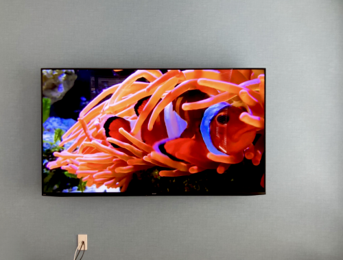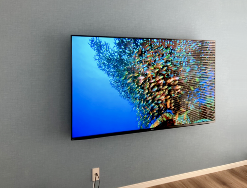 補強済みの壁に75型と55型のテレビをそれぞれフラット金具で取付けいたしました。