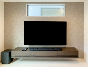 85型のテレビを壁掛け・リブパネルとエコカラット施工