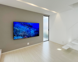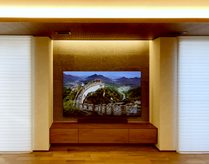 77型と55型のTV2台とAVラック2台を壁掛けNew!!
